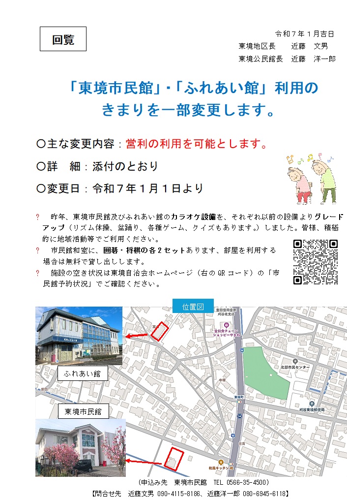 東境市民館・ふれあい館の利用の決まりが変更となります